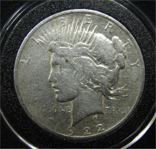 1922-D U.S. PEACE DOLLAR. Coin is in circular case.
