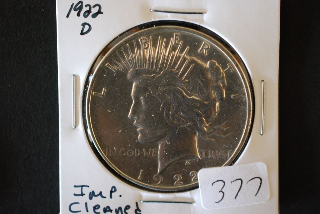 1922-D Peace $1; Imp. Cleaned; EST. $25-40