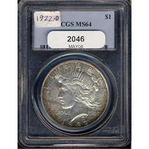 <b>1922-D Peace Dollar. PCGS graded MS64.</b> Lustrous and toned <b>(PCGS # 7358)</b> <i>