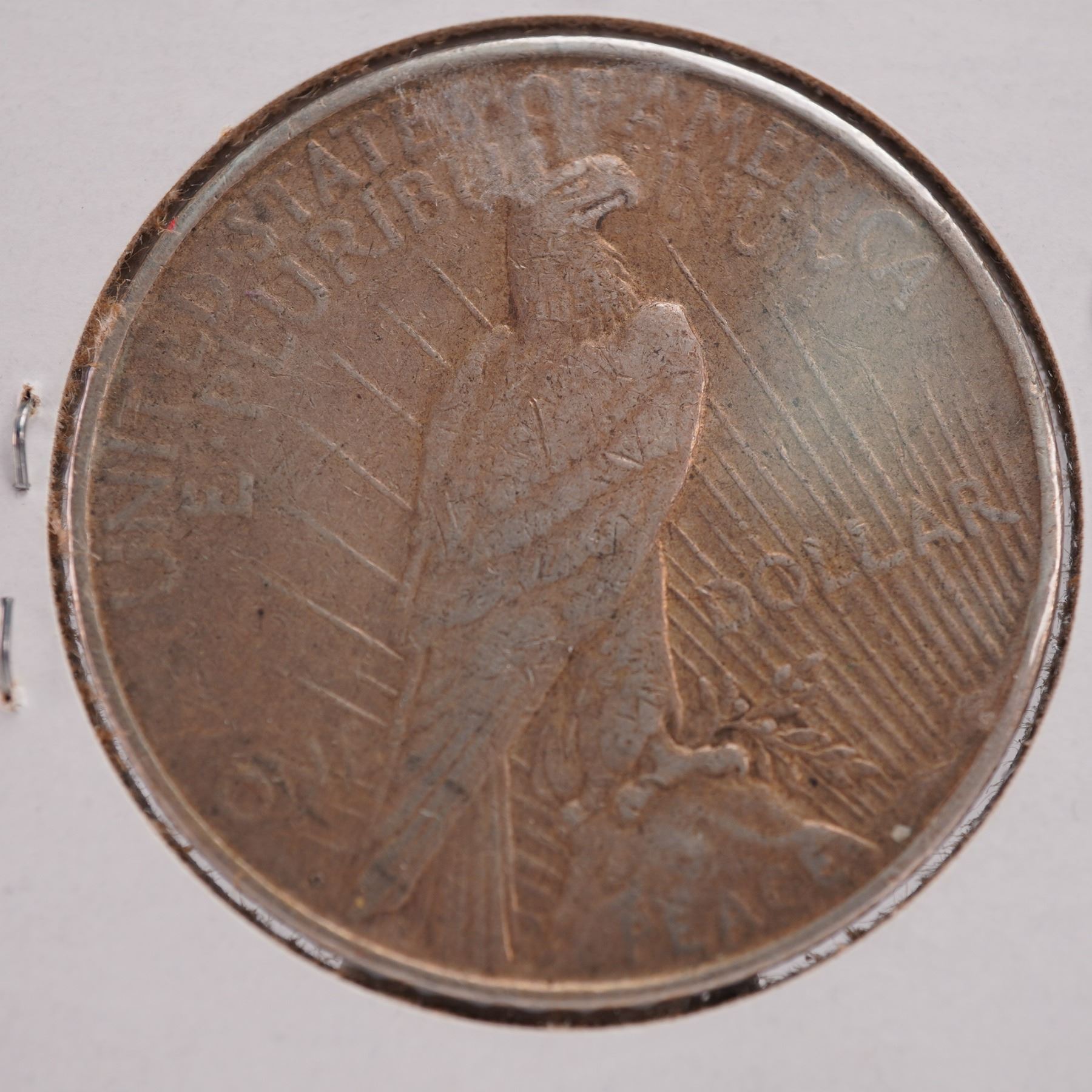 Minted at the Denver Mint, this 1922-D Peace Dollar struck in .999 silver. The face of the coin presents the stately image of Lady Liberty in left-facing profile, her flowing hair crowned with a radiate tiara that signifies the dawn of peace and resilience following global conflict. Designed by Anthony de Francisci, the obverse bears the inscriptions LIBERTY, IN GOD WE TRVST, and the date 1922 below. The reverse depicts a powerful bald eagle perched upon a rock, grasping an olive branch in its talons, surrounded by radiant sunbeams, with the inscriptions UNITED STATES OF AMERICA, E PLURIBUS UNUM, ONE DOLLAR and PEACE. The reverse bears "D" mintmark, denotating Denver facility. Enclosed in a cardboard holder. Holder measures: 2"L x 2"H. Coin diameter: 38.1 mm.