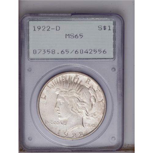 1922-D S$1 MS65 PCGS. Wispy chestnut toning visits thi 1922-D[img border='0' src='http://www.heritag