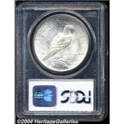 <table><tr><td><table><tr><td>1922-D S$1 MS66 PCGS. Brilliant throughout and highly lustrous with a razor-sharp strike on both obverse and reverse. A flashy Gem whose fields show some matte-like tendencies. <BR><BR><B>Important notice:</B> Heritage usually auctions material at the rate of 200-250 lots per hour. On some occasions eBay Live bid software or the Internet may not be able to keep up with the pace of the auction. We recommend placing a realistic absentee bid now as insurance to avoid disappointment. Occasionally the auctioneer may eliminate or reject an eBay Live bid, and the auctioneer may also reopen a lot after the close of the eBay live bidding (usually because we missed an audience bid), and may reject your bid even if it shows you as the winning bidder. By bidding via eBay Live, you agree that Heritage may award the lot to another bidder at its sole discretion under the circumstances described above or any other reasonable circumstances. Since eBay bids are not shown to us until we open the lot on the floor, we treat those bids just like floor bids. In most cases the floor responds before the eBay bid is presented to us, due to Internet lag time, so for consistency we have made it a policy that floor bids are always considered first over tie eBay live bids. Also please note that all Heritage lots purchased through eBay Live carry a 20% Buyer's Premium. Please make sure you read the Terms and Conditions before you bid. <BR><BR><B>IMPORTANT ANNOUNCEMENT ABOUT RESERVES:</B> Heritage now divulges all reserves on its web site 7 days before every auction. If you want to know whether the reserve on this lot has been met, and if not, what the reserve amount is, please visit this lot page on the HeritageCoin.com web site, or email: bid@HeritageGalleries.com </span></font></td></tr></table></td></tr></table>