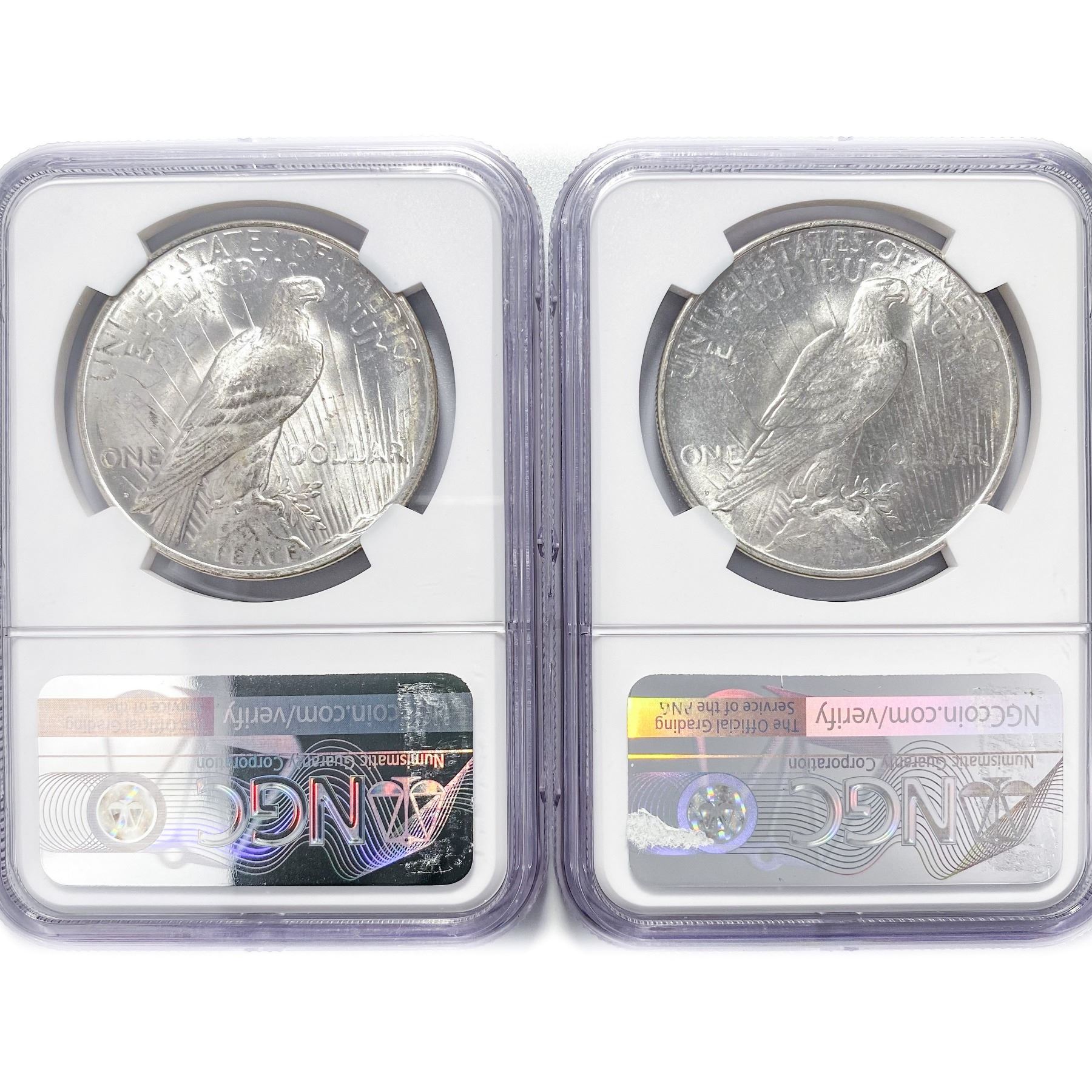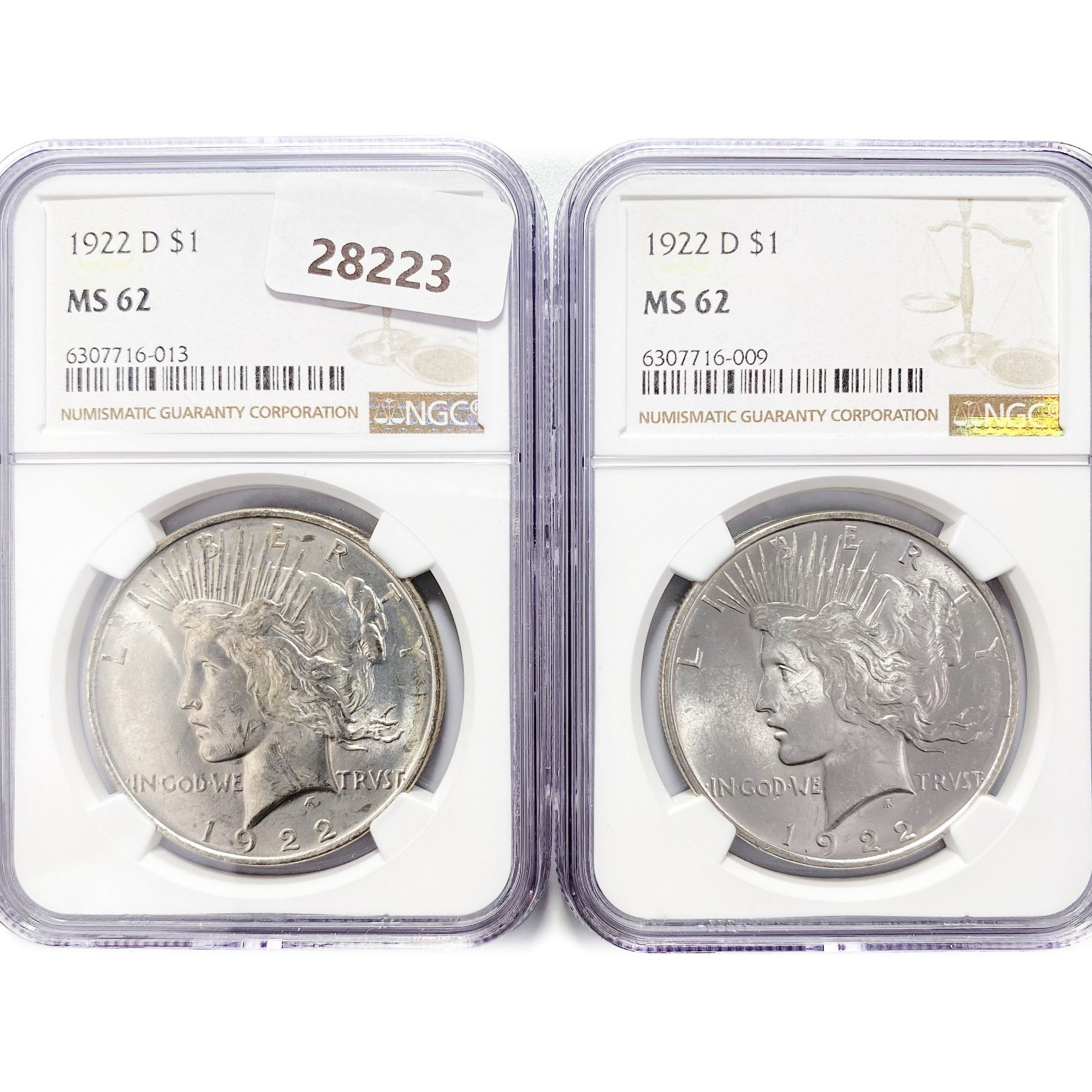 1922-D Set (2) Silver Peace Dollar NGC MS62