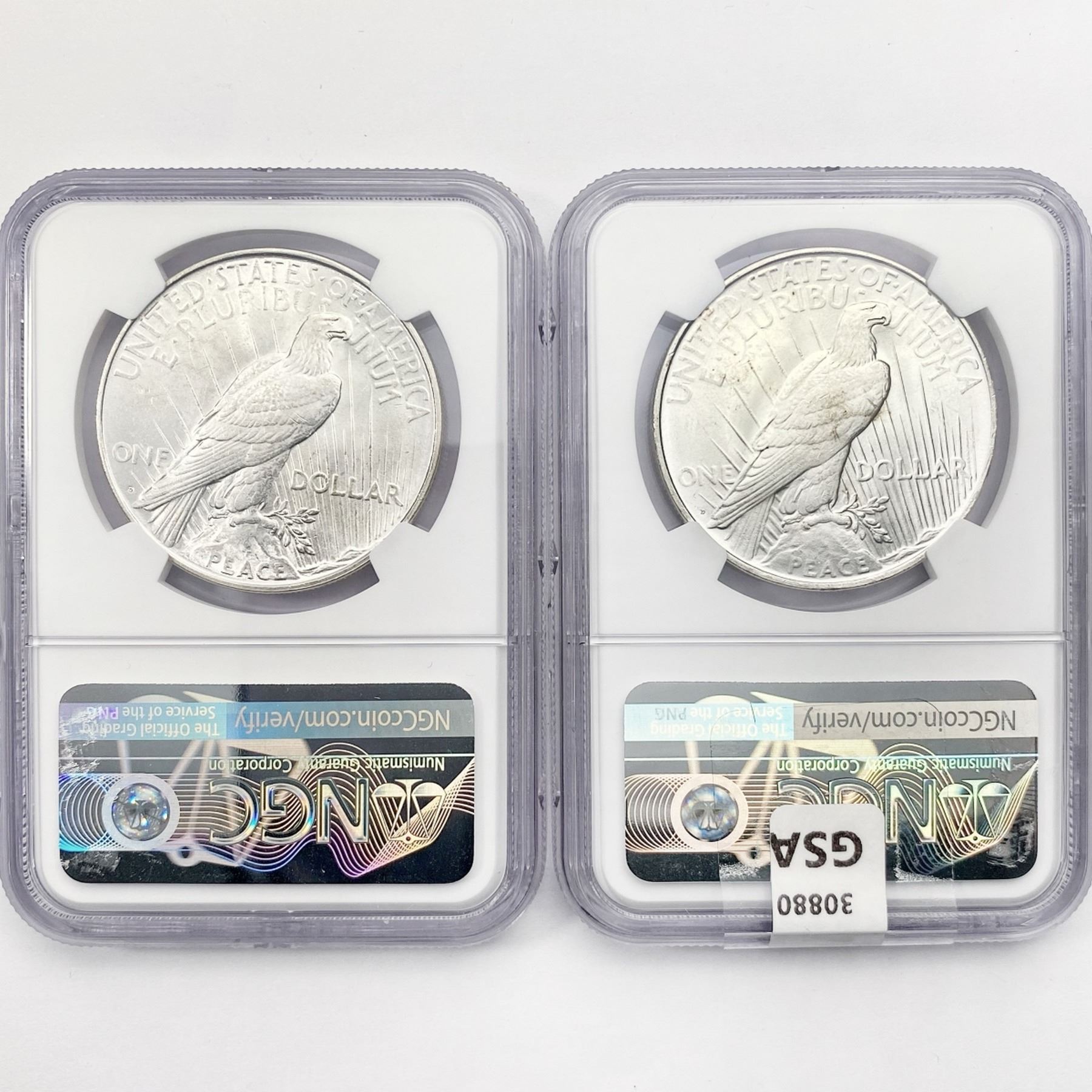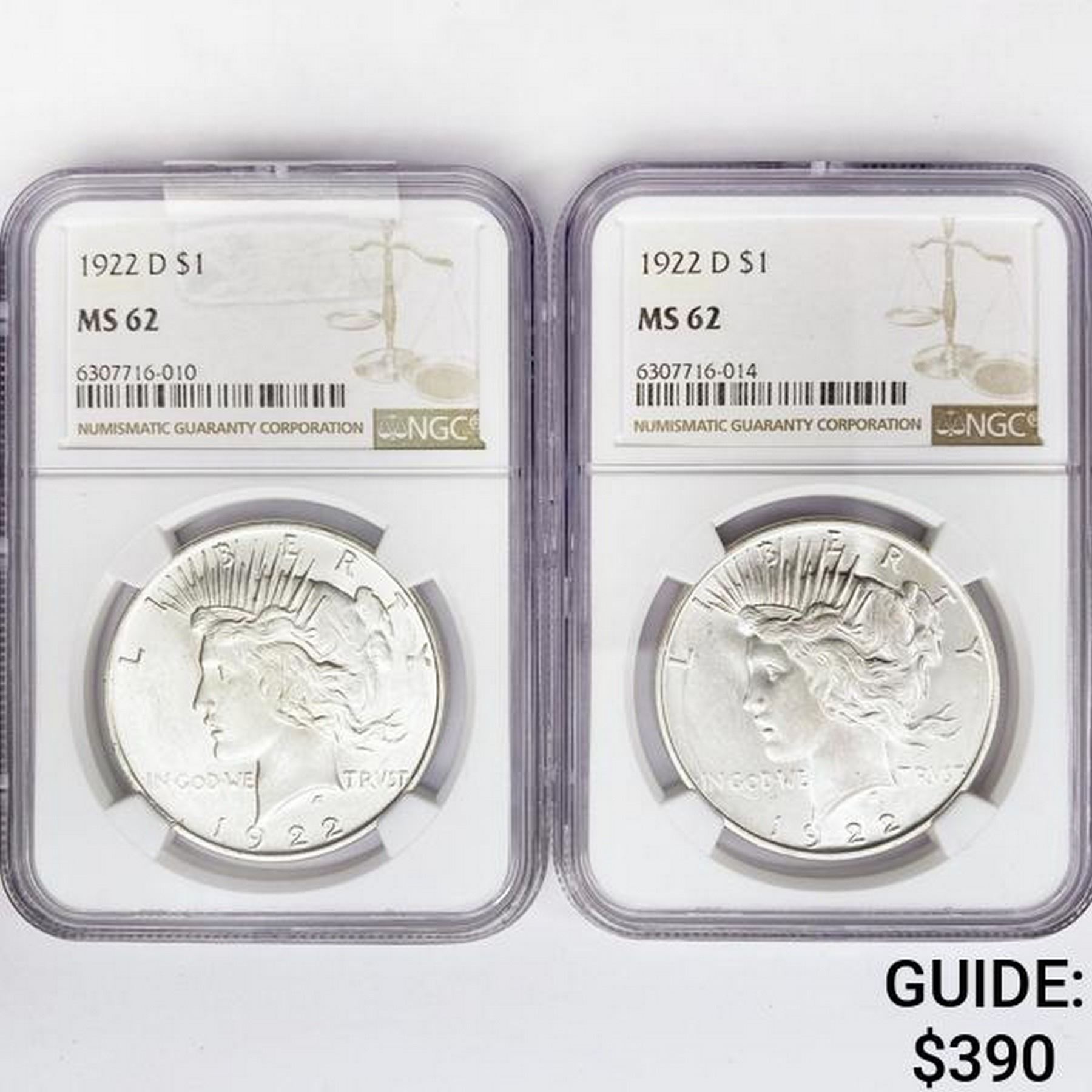 1922-D Set (2) Silver Peace Dollar NGC MS62