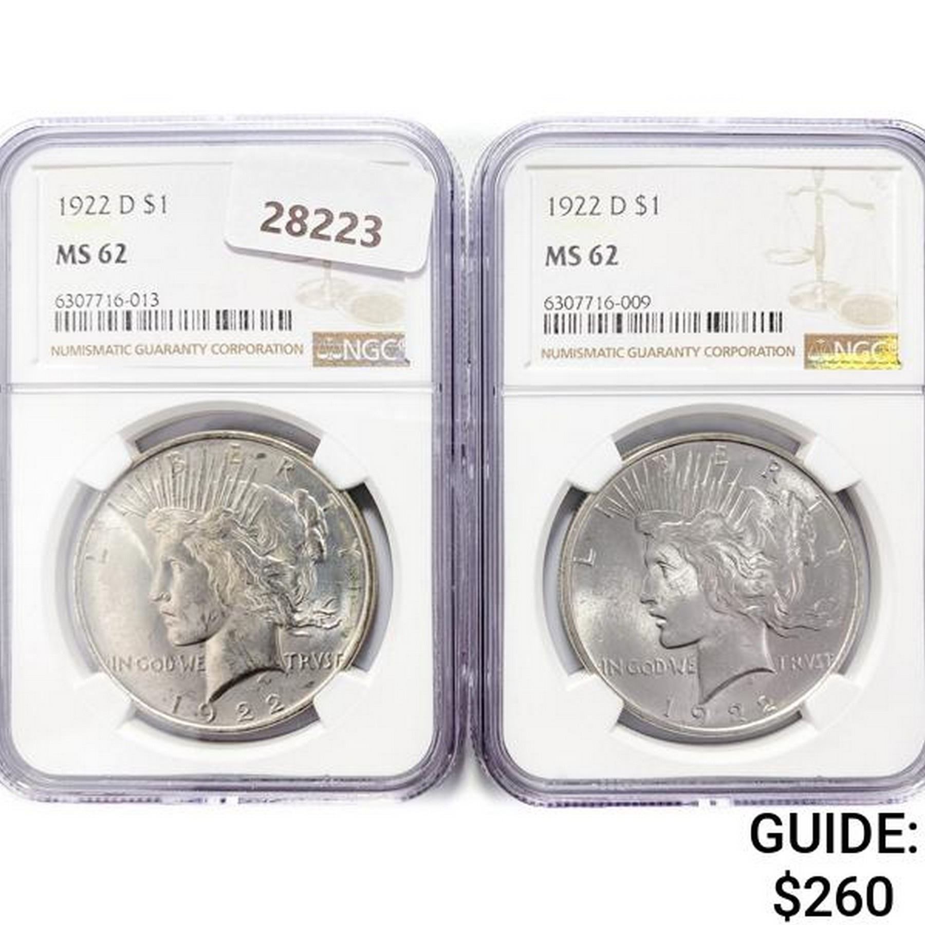1922-D Set [2] Silver Peace Dollar NGC MS62