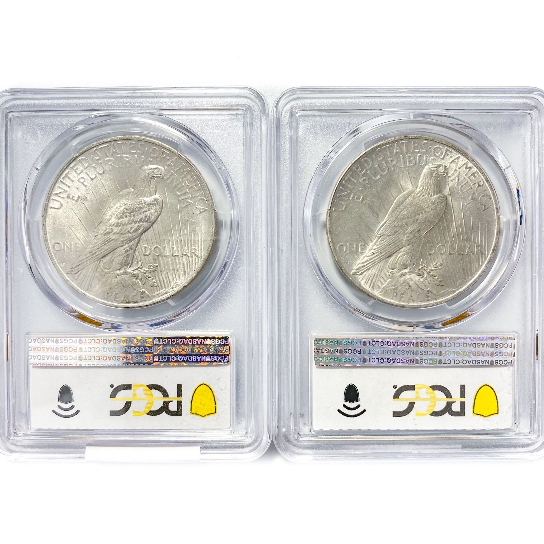 1922-D Set (2) Silver Peace Dollar PCGS MS61