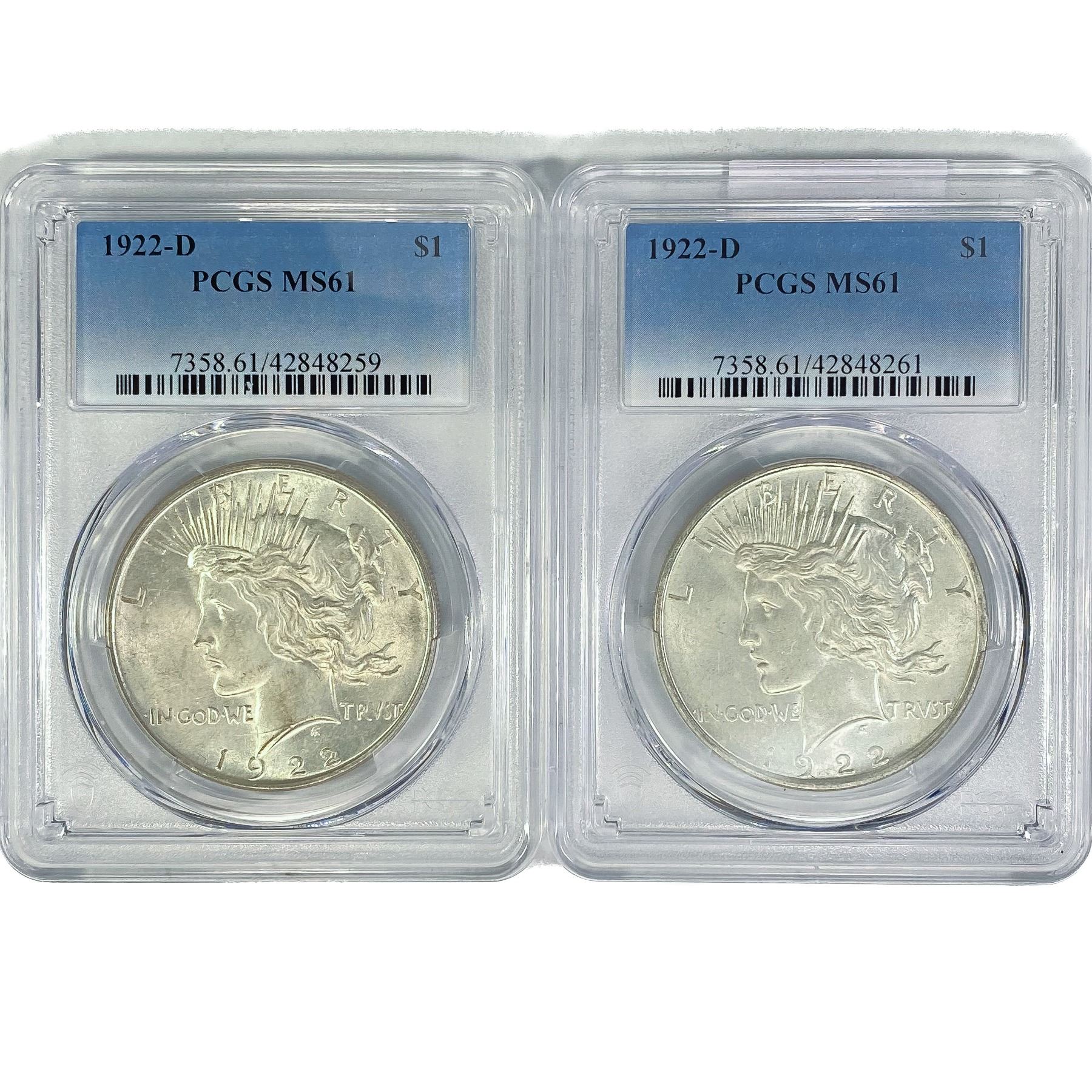 1922-D Set (2) Silver Peace Dollar PCGS MS61