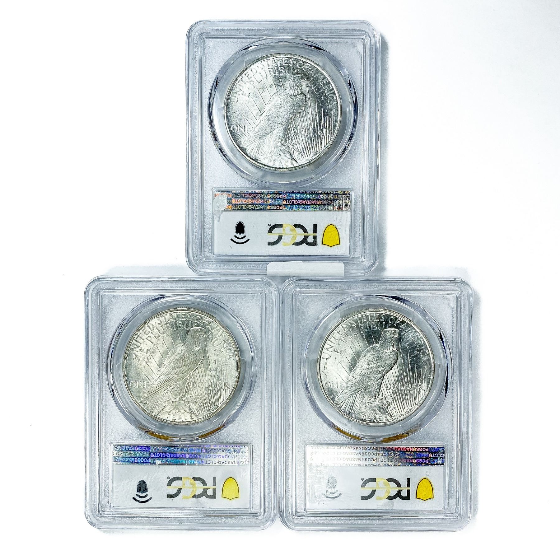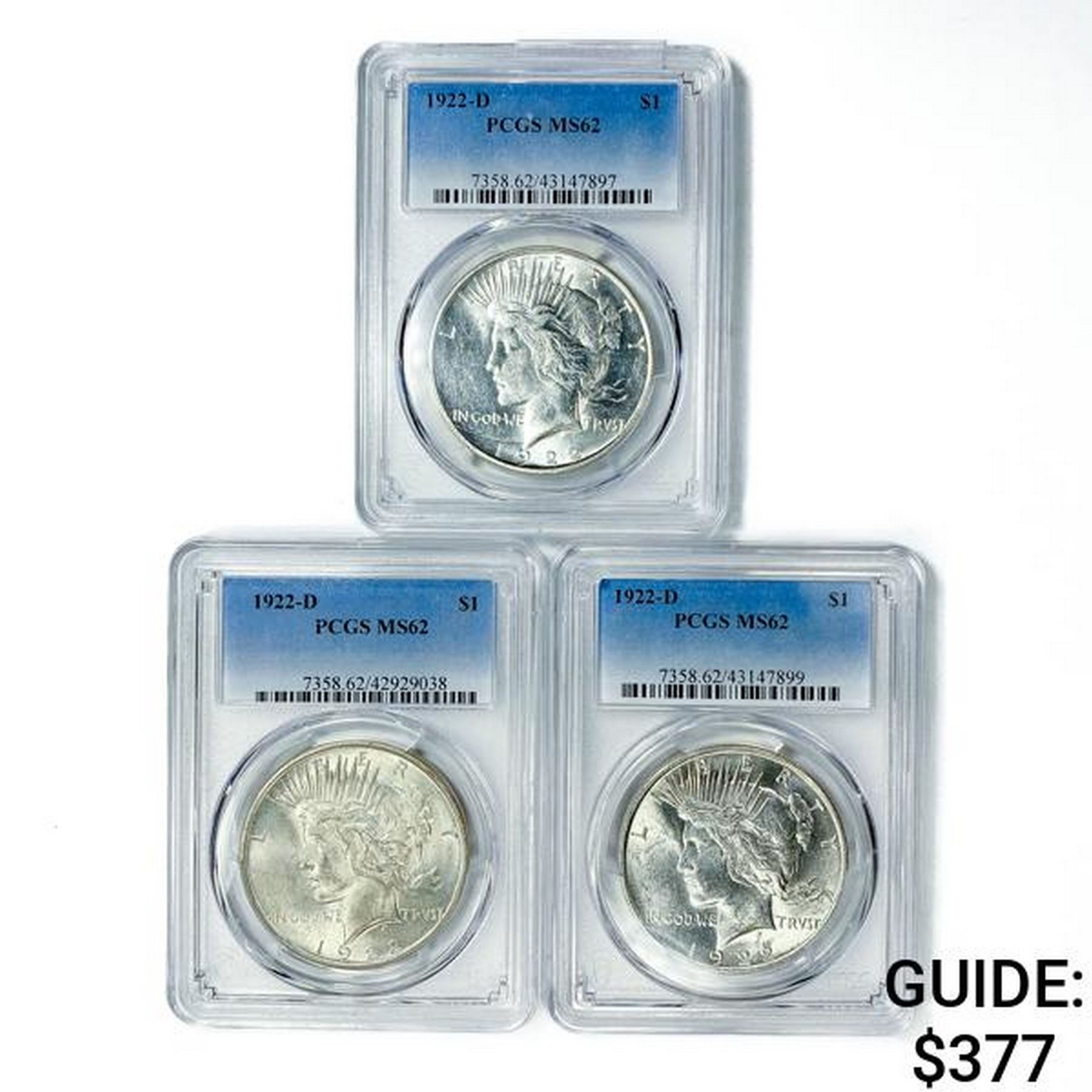 1922-D Set (3) Silver Peace Dollar PCGS MS62