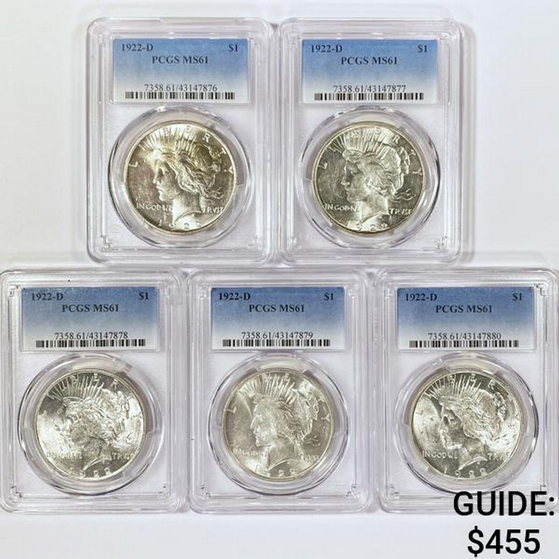 1922-D Set (5) Silver Peace Dollar PCGS MS61