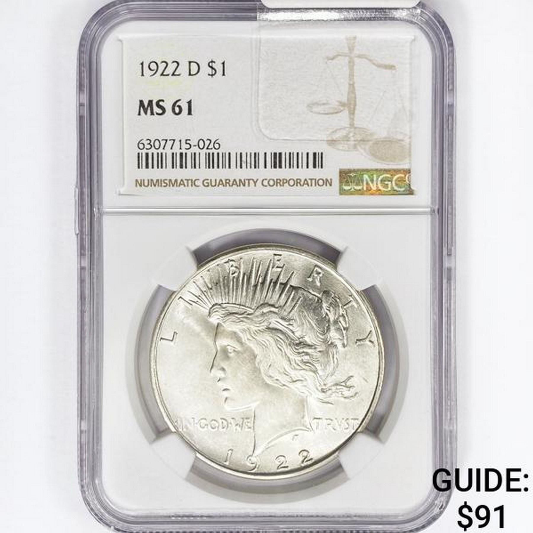 1922-D Silver Peace Dollar NGC MS61
