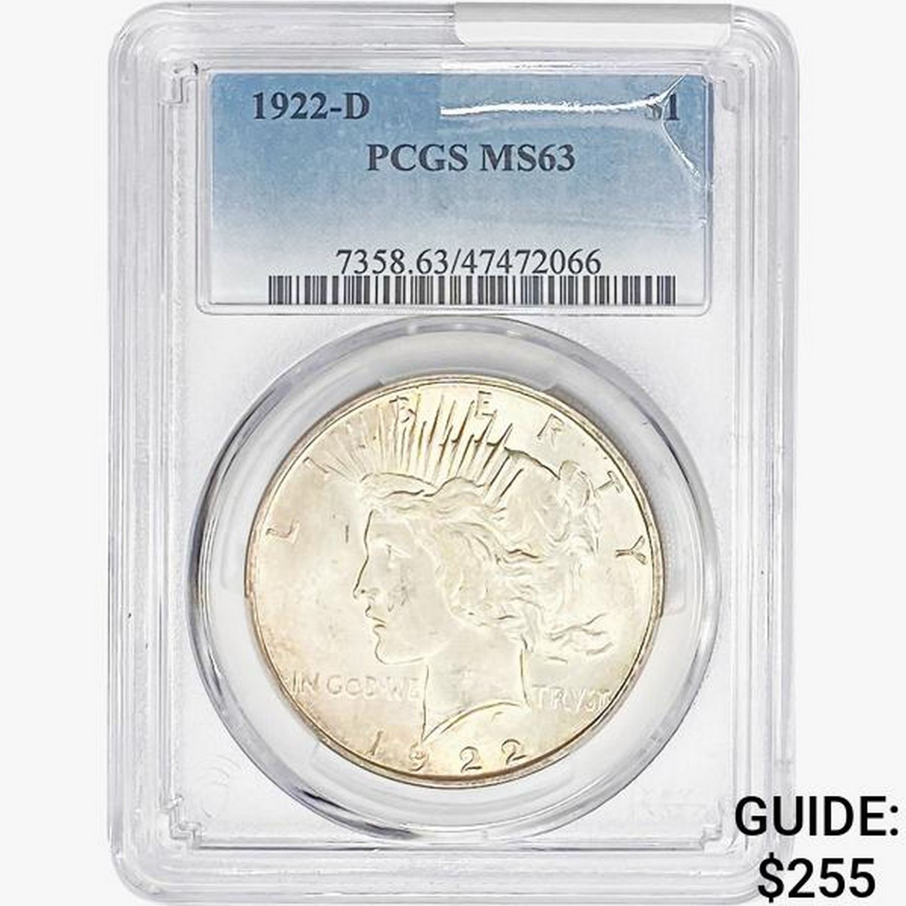 1922-D Silver Peace Dollar PCGS MS63