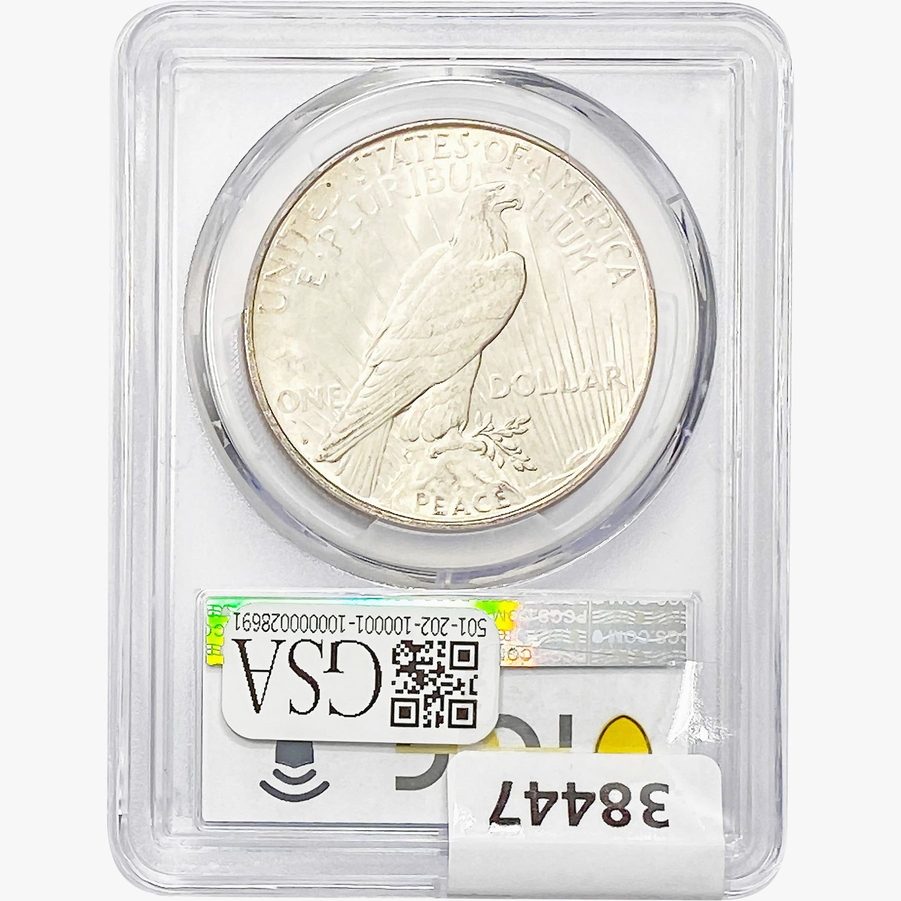 COINS AND CURRENCY LISTED IN GSA’S CATALOG AS GRADED AND ENCAPSULATED BY PCGS, NGC, ANACS, ICG, PCGS CURRENCY, PMG, PCGS BANKNOTE GRADING, CMC OR ANY OTHER THIRD-PARTY GRADING SERVICE ARE LIKEWISE SOLD “AS-IS” EXCEPT AS EXPRESSLY SET FORTH HEREIN. ALL THIRD-PARTY GRADING SERVICE GUARANTEES, INCLUDING AUTHENTICITY, ARE THE SOLE RESPONSIBILITY OF THE THIRD-PARTY GRADING SERVICE AND NOT WARRANTIES OR GUARANTEES OF GSA. BIDDERS SHOULD CONTACT THESE THIRD-PARTY GRADING SERVICES DIRECTLY WITH RESPECT TO ANY CLAIMS OR QUESTIONS THEY MAY HAVE CONCERNING THEIR GUARANTEES AND WARRANTIES. BIDDERS ACKNOWLEDGE AND AGREE THAT AUCTIONEER IS NOT BOUND BY OR LIABLE FOR ANY OPINION OR CERTIFICATION BY ANY THIRD-PARTY GRADING SERVICE. REMOVAL OF A PRODUCT FROM ITS PROTECTIVE CASING OR HOLDER OR ALTERATION OF ANY COIN HOLDER WAIVES ALL RIGHTS CONCERNING THE PRODUCT CONTAINED THEREIN.