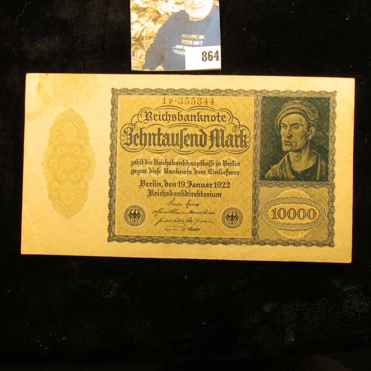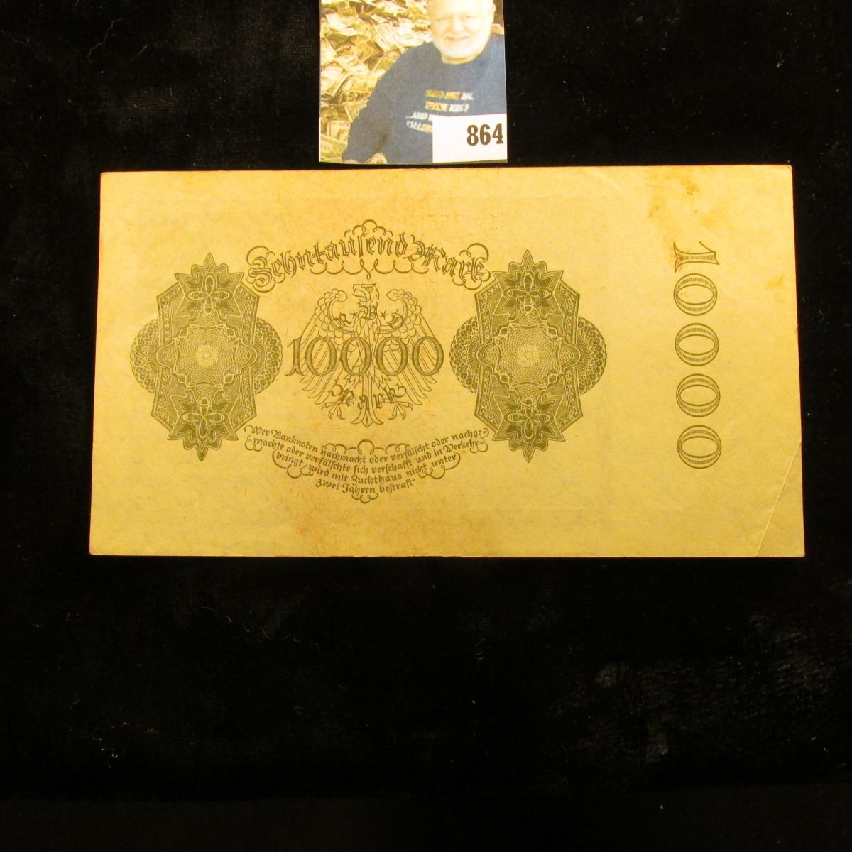 1922 "Dracula" 10,000 Mark German Bank Note, near Crisp Unc.