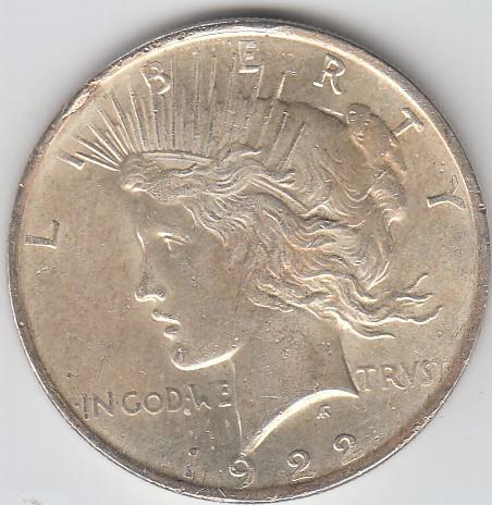 1922 FLASHY BU SILVER $1 PEACE DOLLAR