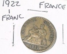 1922 FRANCE 1 FRANC *NICE EARLY EXTRA FINE GRADE* COIN!! COIN CAME OUT OF SAFE!! ***Coin, Currency & All Items Listed in this auction - Grades, Conditions and Values are not Safe Deposit Coins LLC Responsibilty. Grades, Condition and Values are determined by Consigner(s) & Buyers ONLY