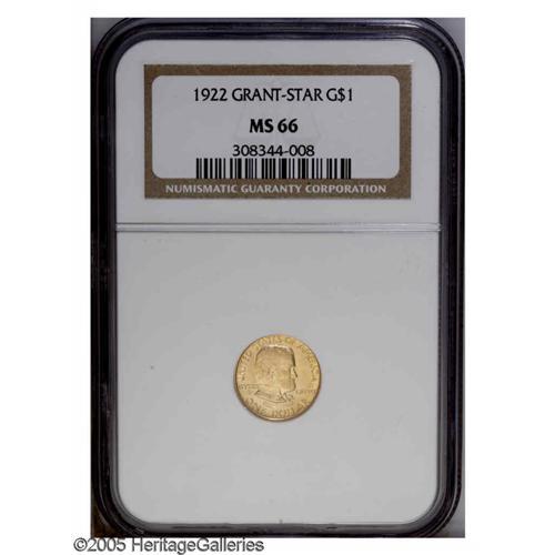 <B>1922<G$1> Grant With Star MS66 NGC.</B></I> Extraordinary surfaces and eye appeal with satiny gold luster and sharply defined design details. Although a number of these have been certified at higher grade levels, few could be more attractive.<BR><I>From The Lexington Collection.</B></I>