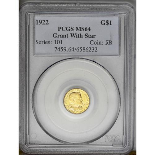 <B>1922<G$1> Grant With Star MS64 PCGS.</B></I> Well struck and nearly unmarked, with original, subtle orange-gold coloration over both sides. A low mintage, perennially popular issue.