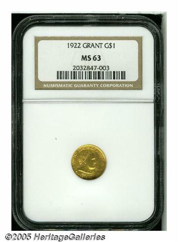 1922 G$1 Grant no Star MS63 NGC. Well struck, sat