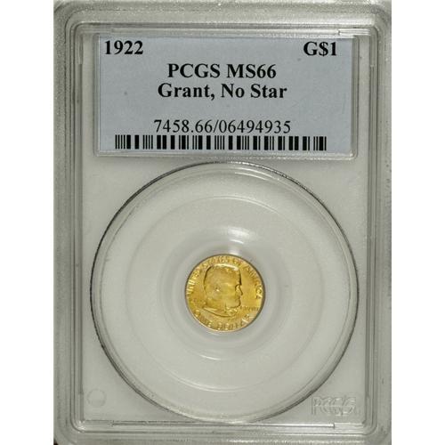 <B>1922 G$1 Grant no Star MS66 PCGS.</B></I> Beautiful orange-gold coloration is accented in the protected areas by glints of greenish-gold. Swirling die polish lines are characteristic, but there are essentially no post-strike impediments. Other than providing an extra variety for sale, the Grant no Star and Grant with Star bear no special significance.<BR><BR><b>Shipping:</b> Coins & Currency (<a target="_blank" href="http://www.heritageauctions.com/common/shipping.php">view shipping information</a>)