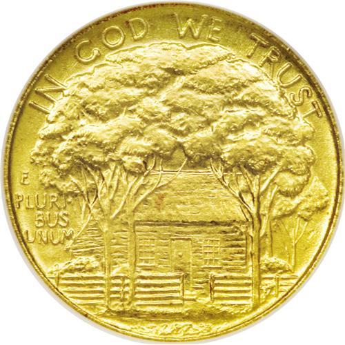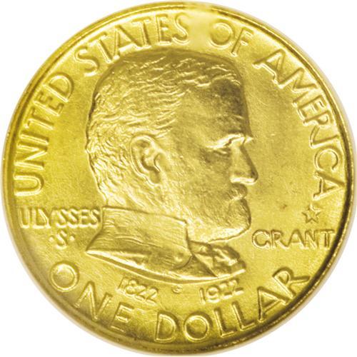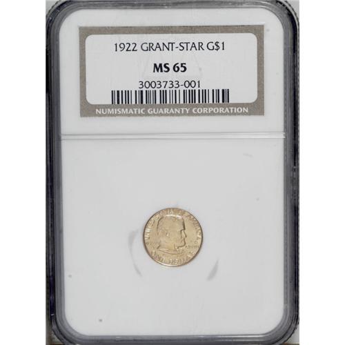 <B>1922<G$1> Grant with Star MS65 NGC.</B></I> This is a satiny green-gold Gem with sharp design elements and exceptional eye appeal. A small coppery-orange toning spots is visible at the center of the cabin's roof on the reverse, but no other spots are evident on either side. Considerable die polish is visible in the fields as usual.