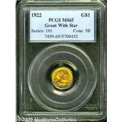 <B>1922 G$1 Grant with Star MS65 PCGS.</B></I> Fully struck with an original greenish-gold and orange-gold appearance over both sides. A low-mintage, always popular issue.