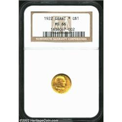 1922 G$1 Grant with Star MS66 NGC. A beautiful, well frosted Gem that displays characteristic olive-
