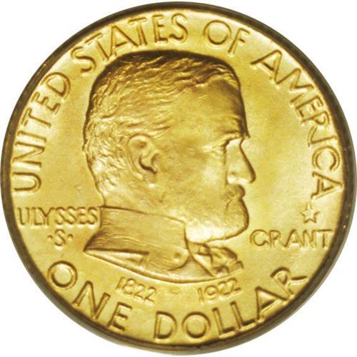 <B>1922<G$1> Grant with Star MS66 PCGS.</B></I> The Grant commemorative issues include two varieties of half dollars and two varieties of gold dollars, with or without an incused star above GRANT. Aside from the different denominations and the obvious size difference, designs on each of these coins are identical. This is a sharply struck Premium Gem quality example with excellent aesthetic appeal. The surfaces have rich orange-gold luster with no mentionable distractions.
