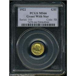 <table><tr><td><TABLE cellSpacing=0 cellPadding=0 width="100%" bgColor=#000000 border=0><TBODY> <TR><TD width="100%"><TABLE cellSpacing=1 cellPadding=3 width="100%" border=0><TBODY><TR><TD width="100%" bgColor=#79735c><FONT face=arial color=#ffffff size=3><B>Description</B> </FONT></TD></TR><TR><TD width="100%" bgColor=#ffffff><FONT face=arial size=2><B>1922 G$1 Grant with Star MS66 PCGS.</B></I> Razor sharp with shimmering orange-gold surfaces that handily qualify as Gem. An eye appealing example of this low mintage gold commem. </FONT></TD></TR></TBODY></TABLE></TD></TR></TBODY></TABLE><BR><A name=PricesRealized></A><TABLE cellSpacing=0 cellPadding=0 width="100%" bgColor=#000000 border=0><TBODY><TR><TD width="100%"><TABLE cellSpacing=1 cellPadding=3 width="100%" border=0><TBODY><TR><TD width="100%" bgColor=#79735c><A name=PR><FONT face=arial color=#ffffff size=3><B>Previous Prices from Heritage Auctions</B> </FONT></A></TD></TR><TR><TD bgColor=#f6f6ed><TABLE cellSpacing=0 cellPadding=0 width="100%" border=1><TBODY><TR><TD align=middle width="33%"><B>Date</B></TD><TD align=middle width="33%"><B>Service</B></TD><TD align=middle width="33%"><B>Price</B></TD></TR><TR bgColor=whitesmoke><TD width="33%"><B>06/03/2003</B></TD><TD width="33%">PCGS</TD><TD width="33%">$3,105.00</TD></TR><TR bgColor=whitesmoke><TD width="33%"><B>04/22/2003</B></TD><TD width="33%">PCGS</TD><TD width="33%">$3,105.00</TD></TR><TR bgColor=whitesmoke><TD width="33%"><B>01/21/2003</B></TD><TD width="33%">PCGS</TD><TD width="33%">$3,335.00</TD></TR><TR bgColor=whitesmoke><TD width="33%"><B>10/22/2002</B></TD><TD width="33%">PCGS</TD><TD width="33%">$3,335.00</TD></TR><TR bgColor=whitesmoke><TD width="33%"><B>03/05/2002</B></TD><TD width="33%">NGC</TD><TD width="33%">$3,565.00</TD></TR><TR bgColor=whitesmoke><TD width="33%"><B>09/04/2001</B></TD><TD width="33%">PCGS</TD><TD width="33%">$3,400.00</TD></TR><TR bgColor=whitesmoke><TD width="33%"><B>02/27/2001</B></TD><TD width="33%">PCGS</TD><TD width="33%">$3,500.00</TD></TR><TR bgColor=whitesmoke><TD width="33%"><B>05/05/2003</B></TD><TD width="33%">PCGS</TD><TD width="33%">$3,220.00</TD></TR><TR bgColor=whitesmoke><TD width="33%"><B>03/01/2003</B></TD><TD width="33%">NGC</TD><TD width="33%">$3,220.00</TD></TR><TR bgColor=whitesmoke><TD width="33%"><B>03/01/2003</B></TD><TD width="33%">PCGS</TD><TD width="33%">$2,990.00</TD></TR><TR bgColor=whitesmoke><TD width="33%"><B>03/01/2003</B></TD><TD width="33%">PCGS</TD><TD width="33%">$3,105.00</TD></TR><TR bgColor=whitesmoke><TD width="33%"><B>01/13/2003</B></TD><TD width="33%">PCGS</TD><TD width="33%">$3,105.00</TD></TR><TR bgColor=whitesmoke><TD width="33%"><B>01/11/2003</B></TD><TD width="33%">PCGS</TD><TD width="33%">$2,990.00</TD></TR><TR bgColor=whitesmoke><TD width="33%"><B>11/23/2002</B></TD><TD width="33%">PCGS</TD><TD width="33%">$3,680.00</TD></TR><TR bgColor=whitesmoke><TD width="33%"><B>09/28/2002</B></TD><TD width="33%">PCGS</TD><TD width="33%">$3,680.00</TD></TR><TR bgColor=whitesmoke><TD width="33%"><B>08/08/2001</B></TD><TD width="33%">PCGS</TD><TD width="33%">$3,565.00</TD></TR><TR bgColor=whitesmoke><TD width="33%"><B>05/31/2001</B></TD><TD width="33%">PCGS</TD><TD width="33%">$3,795.00</TD></TR><TR bgColor=whitesmoke><TD width="33%"><B>02/23/2001</B></TD><TD width="33%">PCGS</TD><TD width="33%">$5,290.00</TD></TR><TR bgColor=whitesmoke><TD width="33%"><B>02/23/2001</B></TD><TD width="33%">PCGS</TD><TD width="33%">$4,140.00</TD></TR><TR bgColor=whitesmoke><TD width="33%"><B>05/05/2000</B></TD><TD width="33%">PCGS</TD><TD width="33%">$4,025.00</TD></TR><TR bgColor=whitesmoke><TD width="33%"><B>01/07/2000</B></TD><TD width="33%">PCGS</TD><TD width="33%">$3,565.00</TD></TR><TR bgColor=whitesmoke><TD width="33%"><B>01/07/2000</B></TD><TD width="33%">NGC</TD><TD width="33%">$2,760.00</TD></TR><TR bgColor=whitesmoke><TD width="33%"><B>09/24/1999</B></TD><TD width="33%">NGC</TD><TD width="33%">$4,830.00</TD></TR><TR bgColor=whitesmoke><TD width="33%"><B>08/13/1999</B></TD><TD width="33%">PCGS</TD><TD width="33%">$2,530.00</TD></TR><TR bgColor=whitesmoke><TD width="33%"><B>01/08/1999</B></TD><TD width="33%">PCGS</TD><TD width="33%">$2,127.50</TD></TR><TR bgColor=whitesmoke><TD width="33%"><B>08/07/1998</B></TD><TD width="33%">PCGS</TD><TD width="33%">$2,185.00</TD></TR><TR bgColor=whitesmoke><TD width="33%"><B>06/06/1998</B></TD><TD width="33%">PCGS</TD><TD width="33%">$2,185.00</TD></TR><TR bgColor=whitesmoke><TD width="33%"><B>01/10/1998</B></TD><TD width="33%">NGC</TD><TD width="33%">$2,185.00</TD></TR><TR bgColor=whitesmoke><TD width="33%"><B>08/17/1996</B></TD><TD width="33%">PCGS</TD><TD width="33%">$2,750.00</TD></TR><TR bgColor=whitesmoke><TD width="33%"><B>10/04/1995</B></TD><TD width="33%">PCGS</TD><TD width="33%">$2,860.00</TD></TR><TR bgColor=whitesmoke><TD width="33%"><B>04/28/1995</B></TD><TD width="33%">PCGS</TD><TD width="33%">$2,750.00</TD></TR></TBODY></TABLE></TD></TR><TR><TD bgColor=#ffffff><FONT face=arial size=1 ?>PLEASE NOTE: All prices realized reflect the final hammer price PLUS the buyer's premium in auctions that charge a buyer's premium. Each item has a notation at the top of the listing indicating whether that lot included a buyer's premium. Example: A item that sells with a final hammer price of $100 and a 20% buyer's premium will display with a price realized of $120. All information listed is intended to be as accurate as possible, but errors are possible. Please use this guide carefully and inform us of any inaccuracies. </FONT></TD></TR></TBODY></TABLE></TD></TR></TBODY></TABLE><BR><TABLE cellSpacing=0 cellPadding=0 width="100%" bgColor=#000000 border=0><TBODY><TR><TD width="100%"><TABLE cellSpacing=1 cellPadding=3 width="100%" border=0><TBODY><TR><TD width="100%" bgColor=#79735c colSpan=6><FONT face=arial color=#ffffff size=3><B>Price Guide*</B> </FONT></TD></TR><TR bgColor=#f6f6ed><TD align=middle><B>Grade</B> </TD><TD align=middle><B>Coin World<BR>(Trends)</B> </TD><TD align=mid