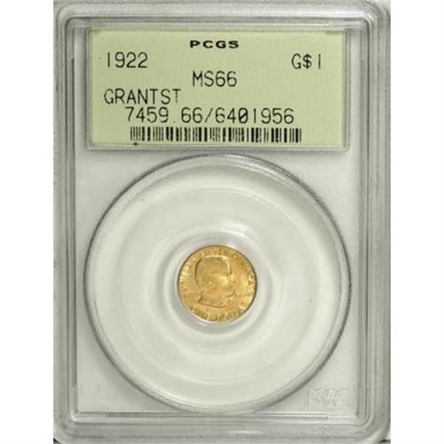<B>1922 G$1 Grant with Star MS66 PCGS.</B></I> This Premium Gem is awash with blazing luster over orange-gold surfaces. Well struck and free of distractions, save for a couple of minor copper spots that are discernible only with the aid of magnification, this example is a delight to behold. Housed in an older generation PCGS holder.<BR><BR><b>Shipping:</b> Coins & Currency (<a target="_blank" href="http://www.heritageauctions.com/common/shipping.php">view shipping information</a>)