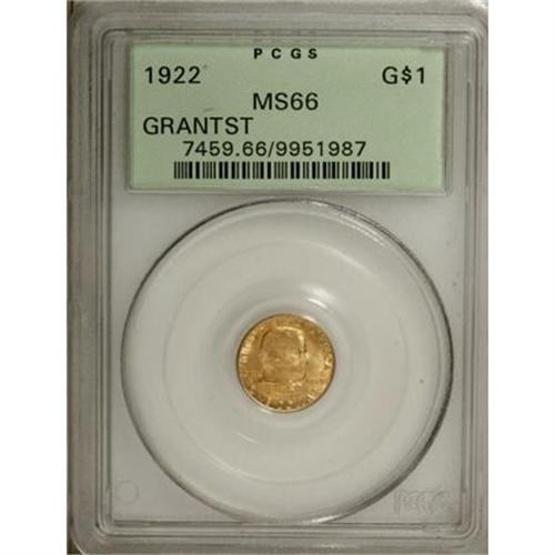 <B>1922 G$1 Grant with Star MS66 PCGS.</B></I> Copper-gold coloration is brought to life by the rich, satiny luster of this Premium Gem Grant dollar. Well struck and, arguably, as nice as some of the MS67 examples on the market. This piece is housed in an older generation PCGS green label holder.<BR><BR><b>Shipping:</b> Coins & Currency (<a target="_blank" href="http://www.heritageauctions.com/common/shipping.php">view shipping information</a>)