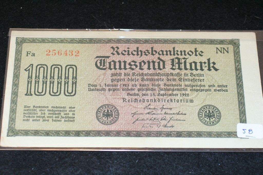 1922 German 1,000 Fausend Mark Foreign Bank Note