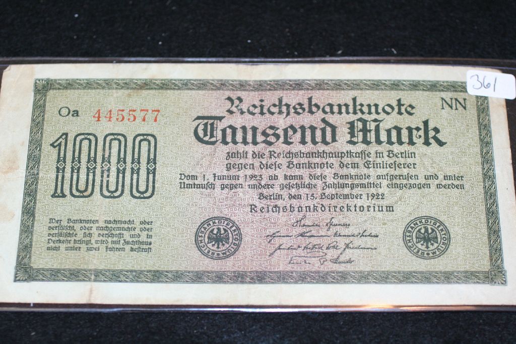 1922 German 1,000 Fausend Mark Foreign Bank Note