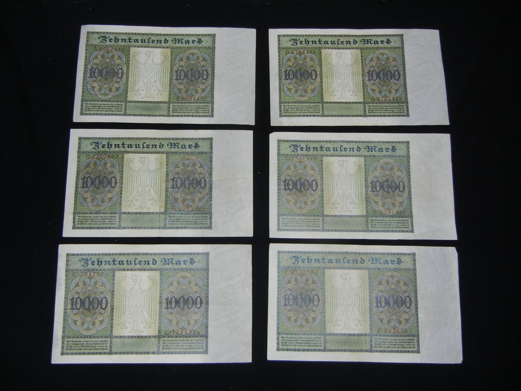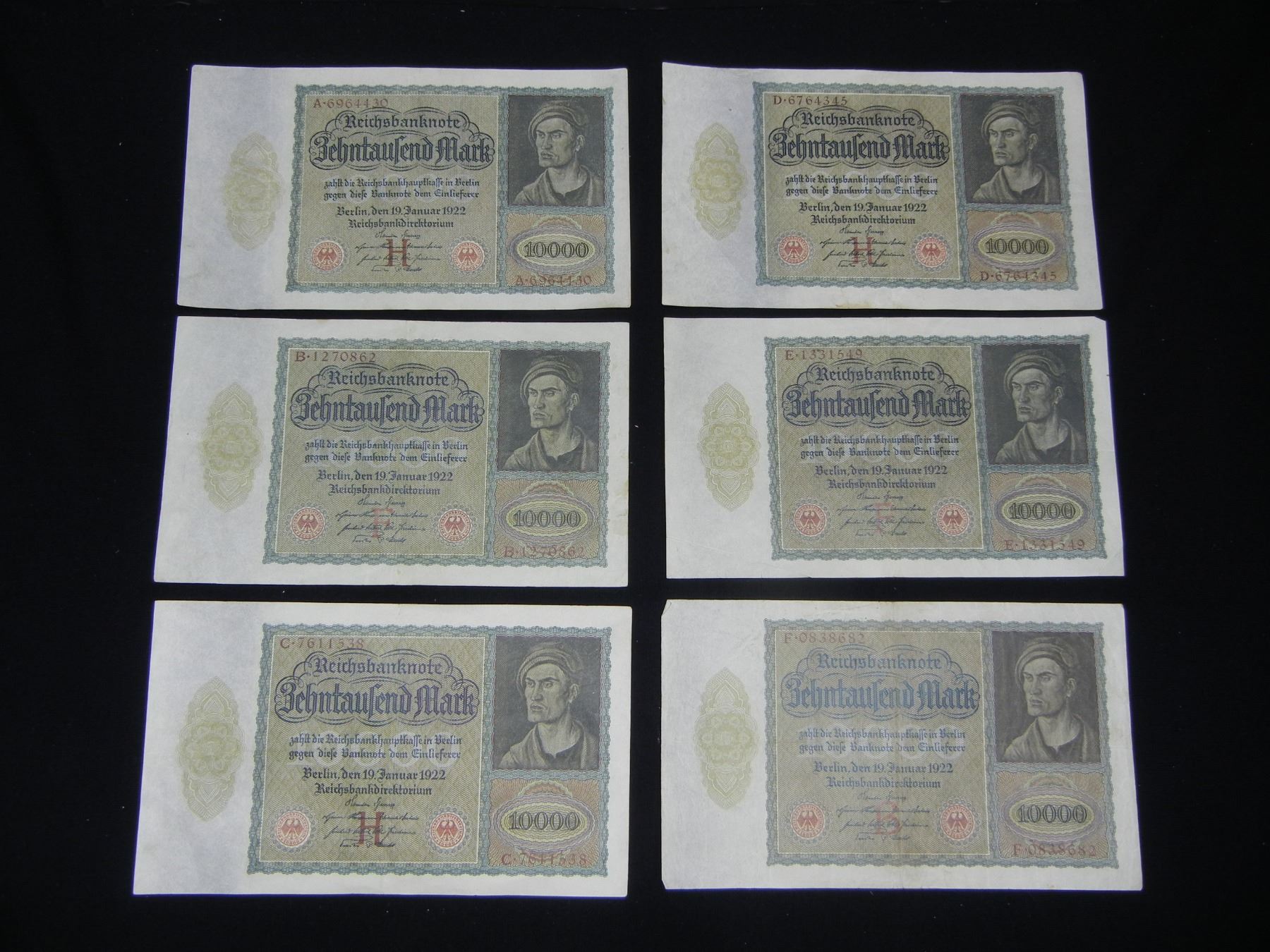 1922 German 10,000 Reichbanknote - A thru F - Lot of 6