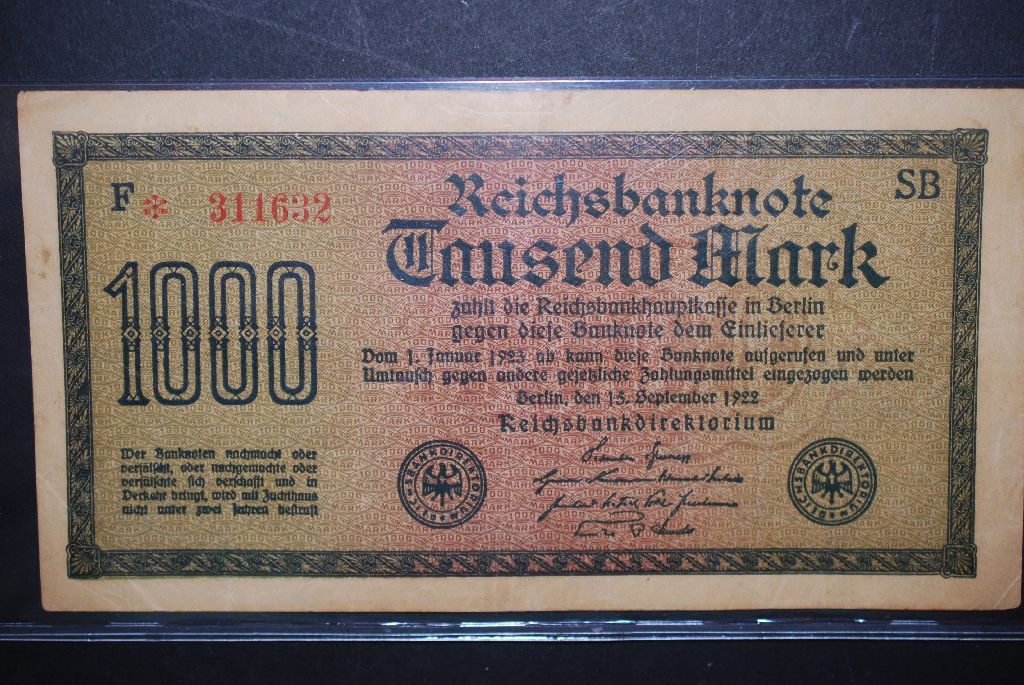 1922 German 1000 Fausend Mark Foreign Bank Note; EST. $3-6