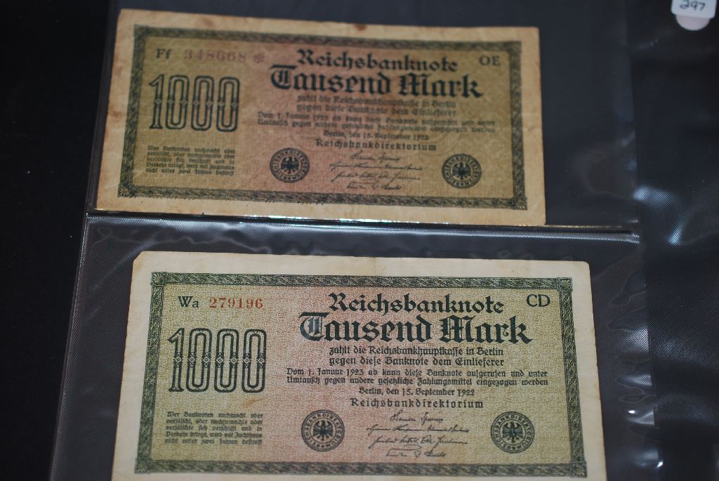 1922 German 1000 Fausend Mark Foreign Bank Note; Lot of 2 Notes; EST. $5-10