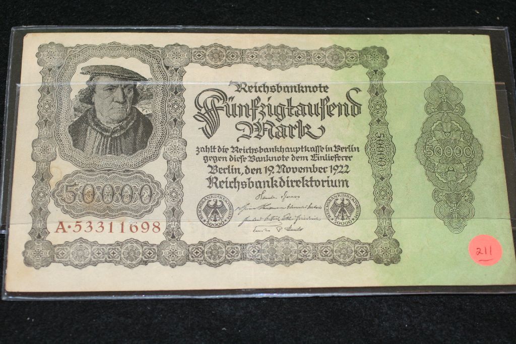 1922 German 50000 Funfzigtaufend Mark Foreign Bank Note