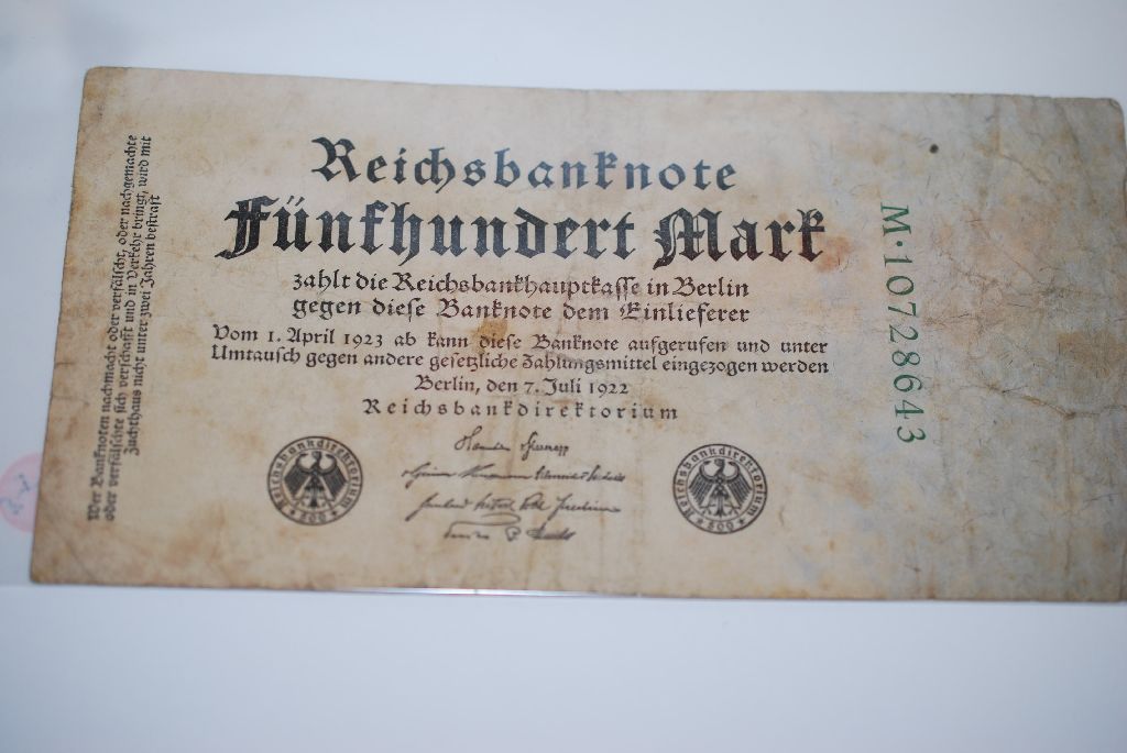1922 German Funfhundert Mark Foreign Bank Note; EST. $3-5