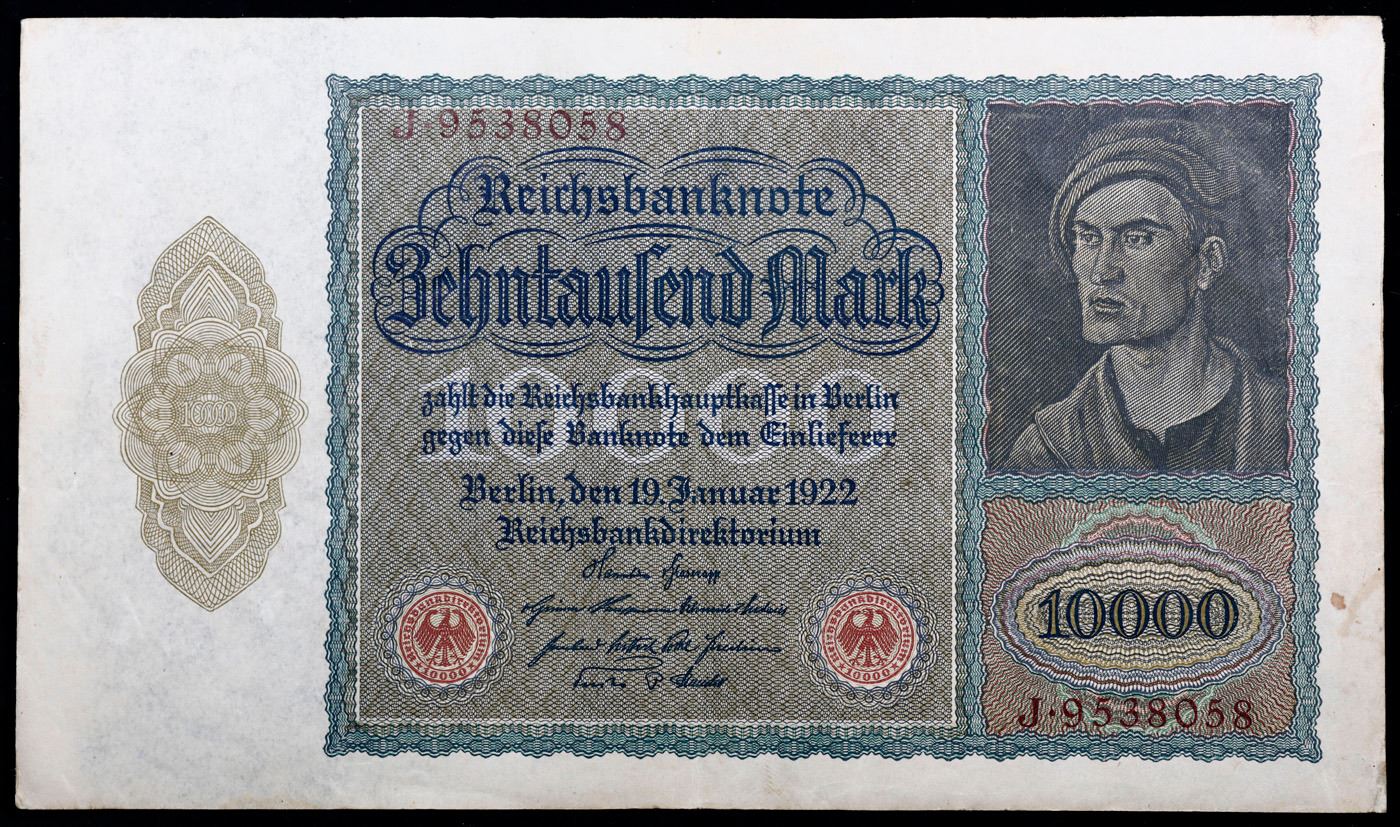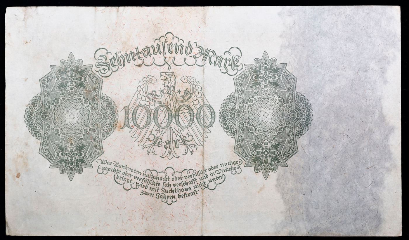 1922 Germany 10,000 Mark "Vampire Note" Post-WWI Hyperinflation Currency P# 71 Grades Choice AU/BU S