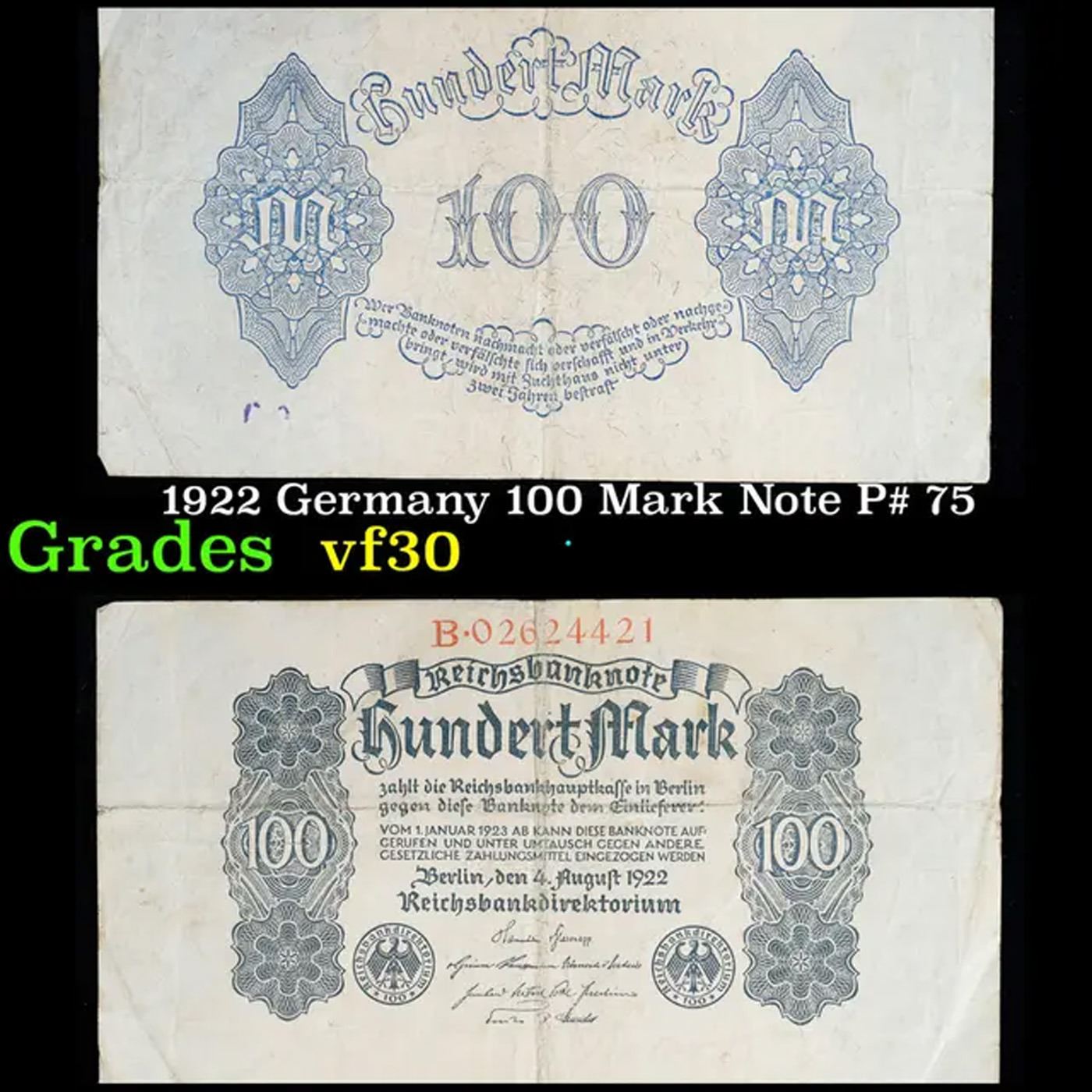1922 Germany 100 Mark Note P# 75 Grades vf++.