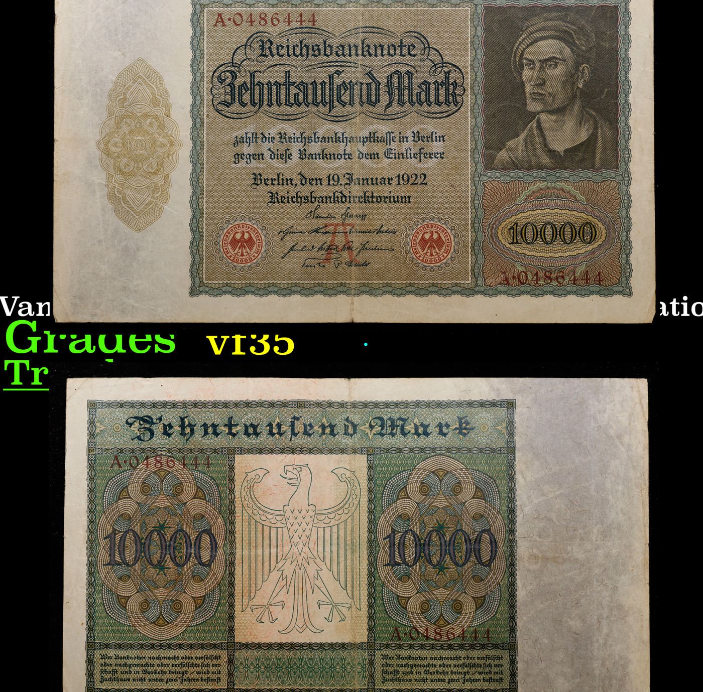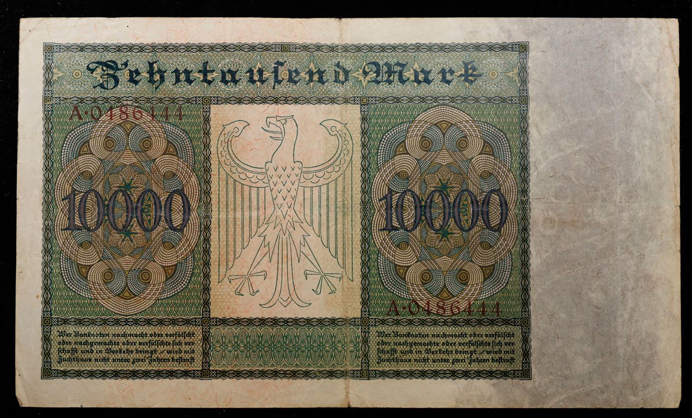 1922 Germany "Vampire" 10,000 Marks Post-WWI Hyperinflation Banknote P# 70 Grades vf++