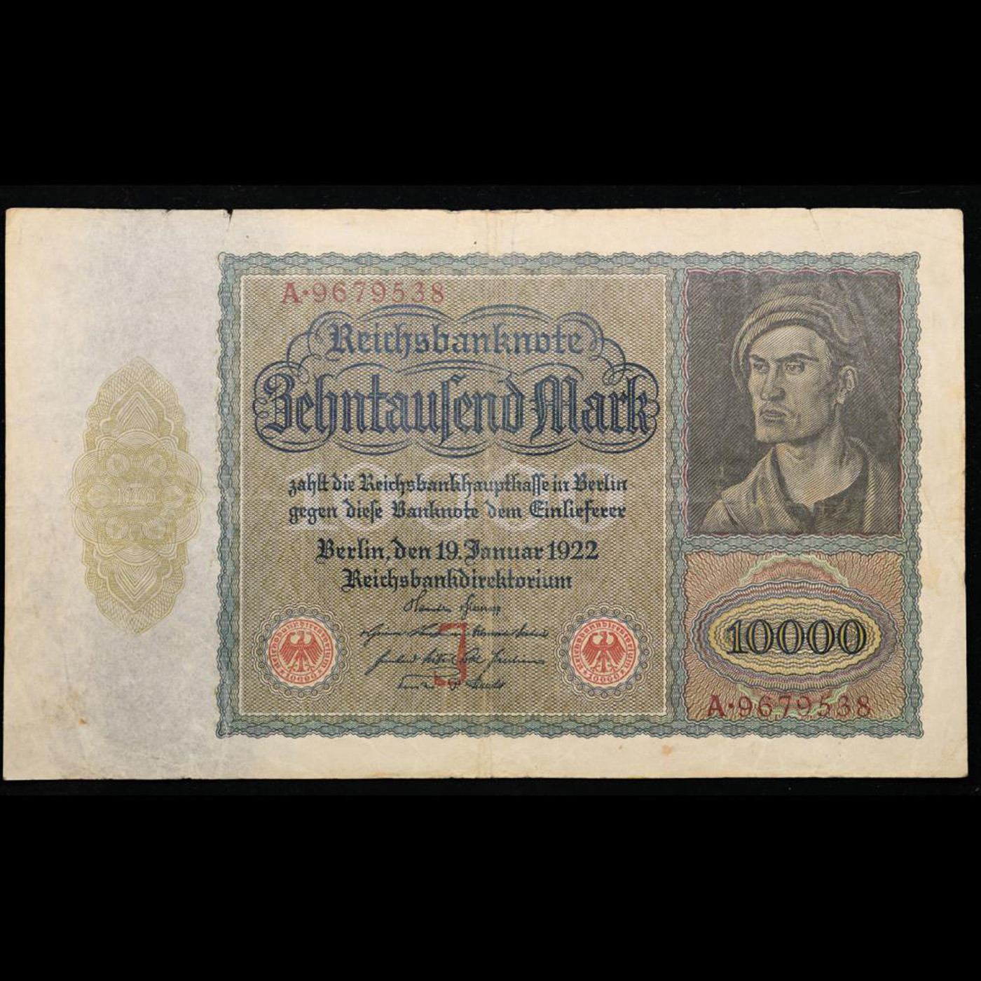 1922 Germany "Vampire" 10,000 Marks Post-WWI Hyperinflation Banknote P# 70 Grades vf++
