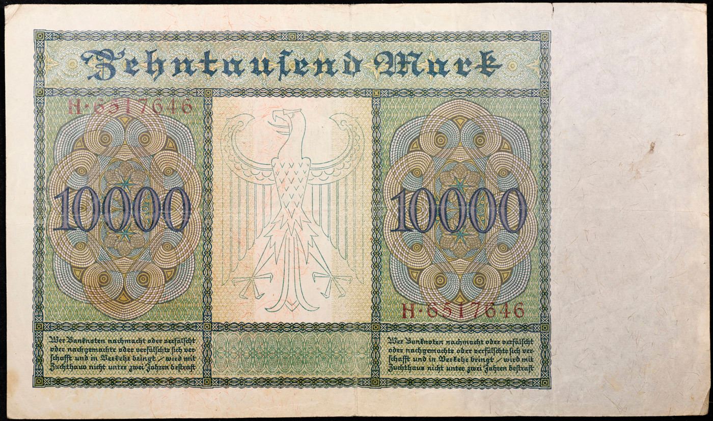 1922 Germany (Weimar) 10,000 Marks "Vampire" Post-WWI Hyperinflation Note P# 70 Grades Select AU