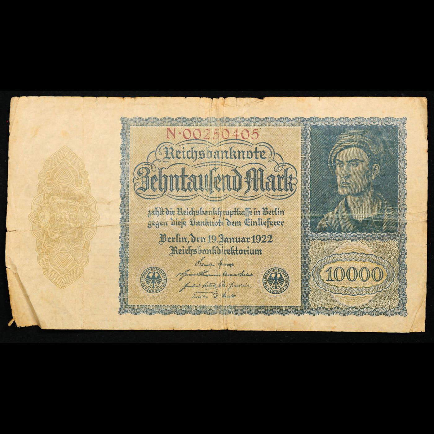 1922 Germany (Weimar Republic) 10,000 Marks "Vampire" Post-WWI Hyperinflation Note P# 70 Grades vf+