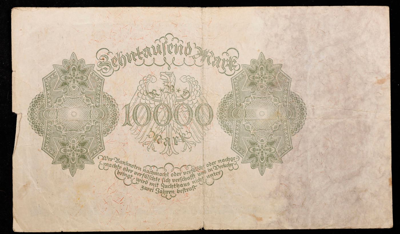 1922 Germany (Weimar Republic) 10,000 Marks "Vampire" Post-WWI Hyperinflation Note P# 71 Grades vf++