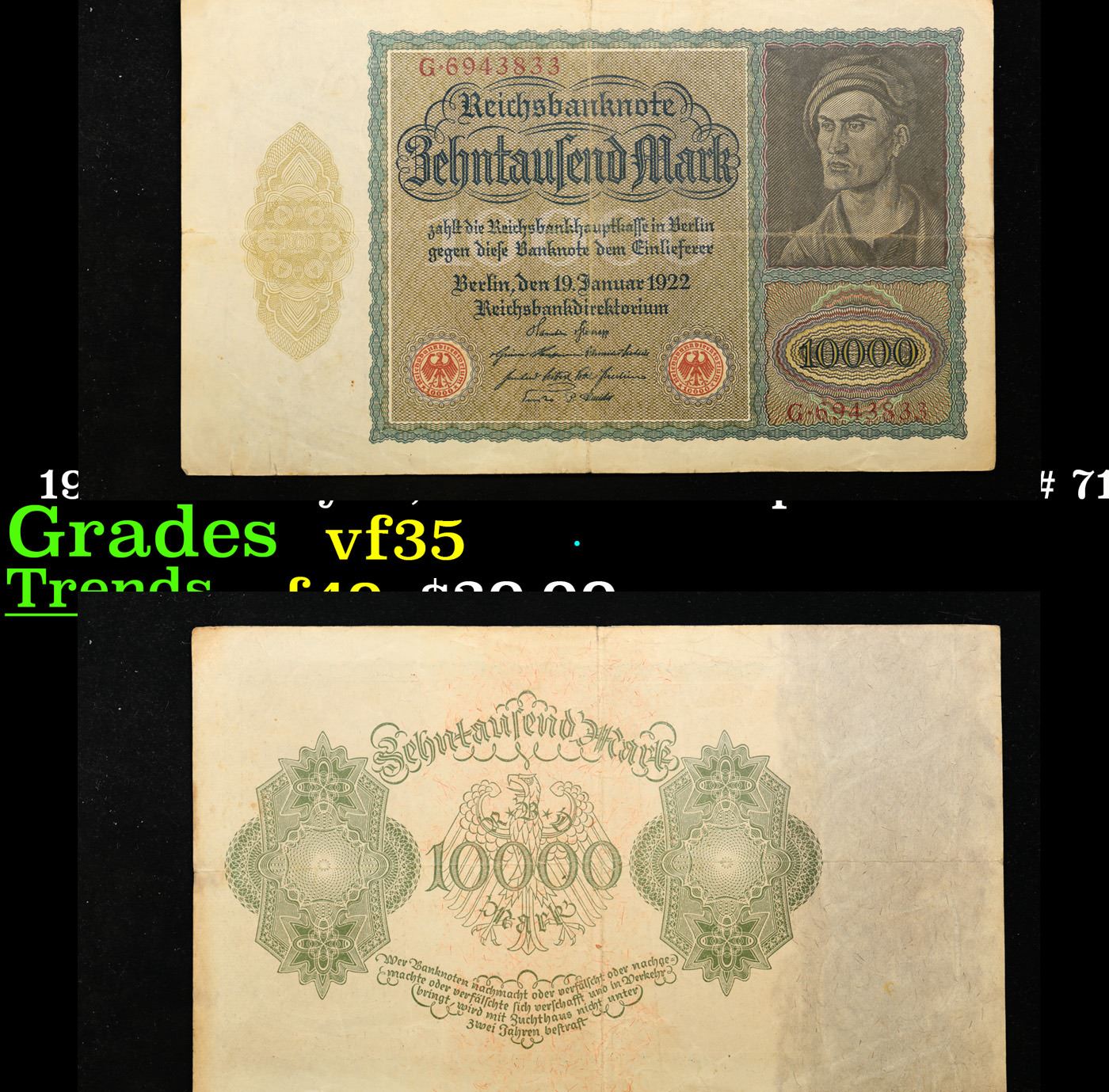1922 Germny 10,000 Mark Vampire Note P# 71 Grades vf++