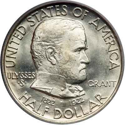 1922 Grant Half Dollar, no star. PCGS graded MS-66. A flashy white coin and one whose brilliance makes it an extremely lustrous Gem. The coin has superlative fields and devices. Pop 217; 33 finer in 67. (PCGS # 9306).