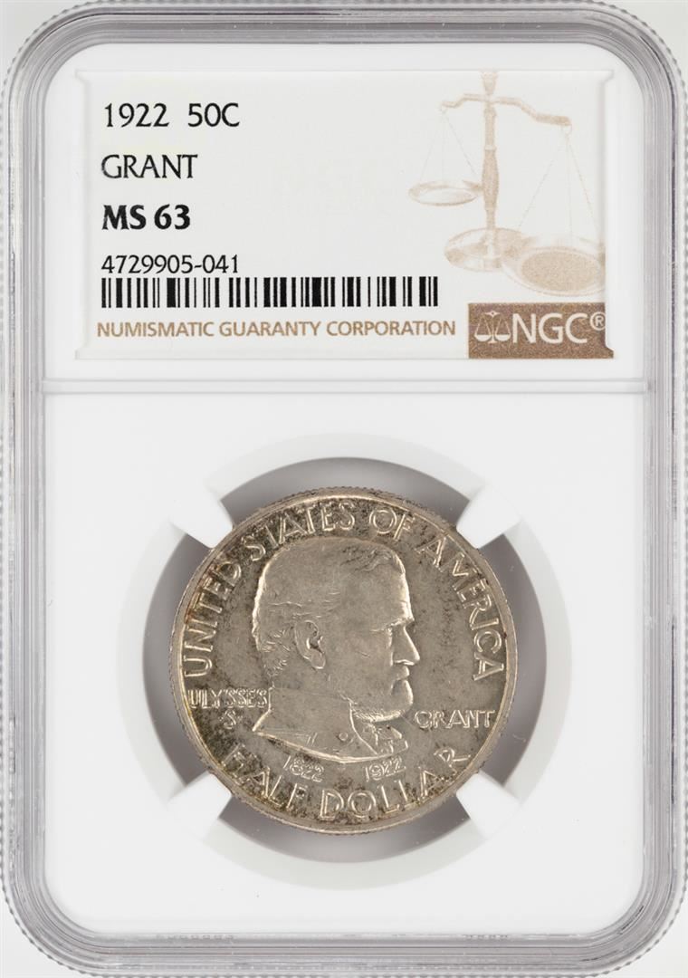 One 1922 Grant Commemorative Half Dollar Coin NGC MS63. NGC Certified.