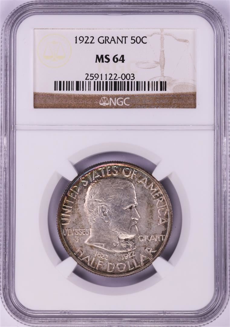 One 1922 Grant Commemorative Half Dollar Coin NGC MS64 Nice Toning. NGC Certified.