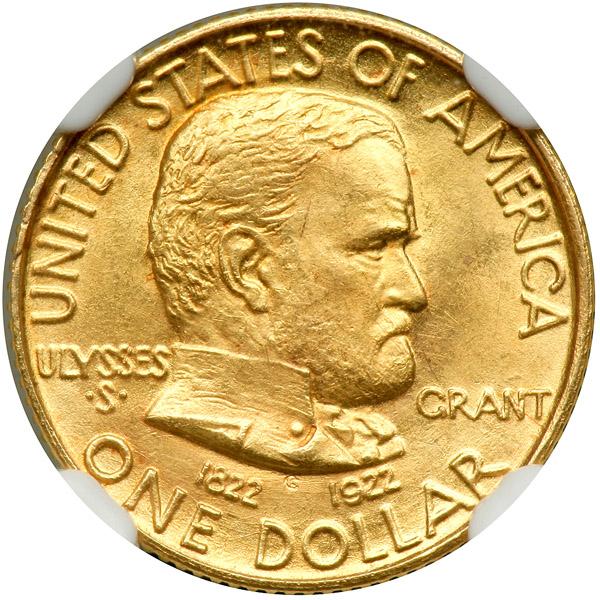 1922 Grant Gold Dollar, no star. NGC graded MS-62 PQ. Plenty of lustrous eye appeal thus our Premium Quality designation for the grade. Mintage: 5,016 (PCGS # 7458) .