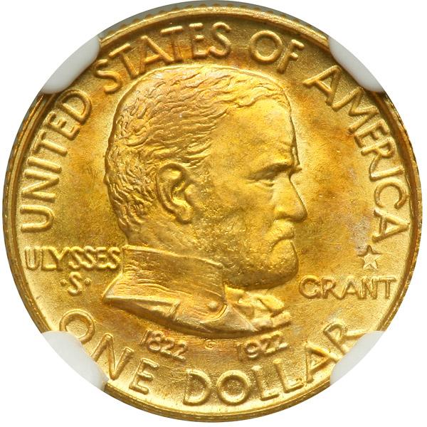 1922 Grant Gold Dollar, With Star. NGC graded MS-68. A magnificent gem boasting rich natural greenish-golden mint bloom colors. This is the finest example we have seen. In order to sell extra Grant Commemoratives to the public, the commission releasing these gold dollars arrogated to themselves a lesson learned from the Alabama commission people the year before. They had the mint stamp a tiny star into the obverse field above the word GRANT. A total of 5,016 were so counterpunched while each coin was in the die so as not to cause a flat spot to appear on the opposite side. Only a few people were tricked by this sly ruse. Today's collector, therefore, has plenty of choice to gem Grant with Star examples from which to choose but at the top end, the population dwindles. The present coin is far better than most. Tied for finest graded at either service. Pop 9; none finer. (PCGS # 7459) .